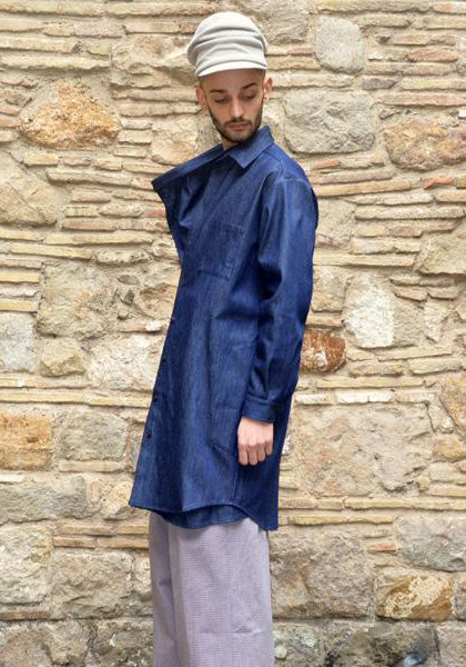 BLESS NO.54 UNISEX NECKERCHIEF SHIRT DRESS BLUE DENIM