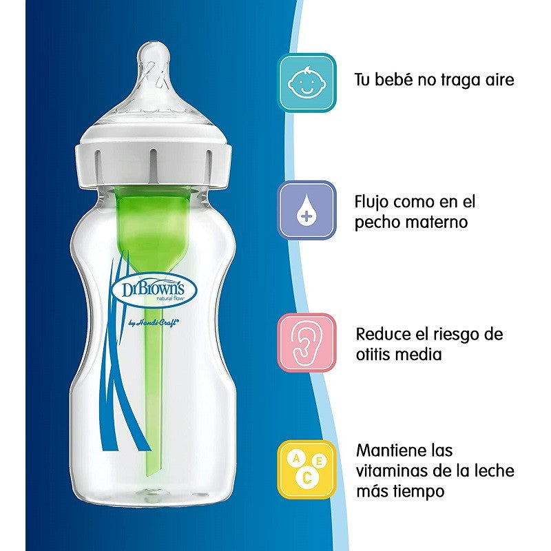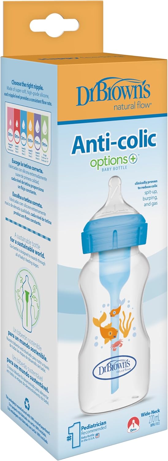 Dr. BROWN'S Biberón Anticólico Boca Ancha Options+ Azul +0 meses 270ml