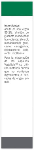 Complemento alimenticio que mejora la salud ósea, conserva niveles normales de calcio y facilita su absorción. Elaborado con aceite de lino virgen, vitamina K2 y vitamina D3.