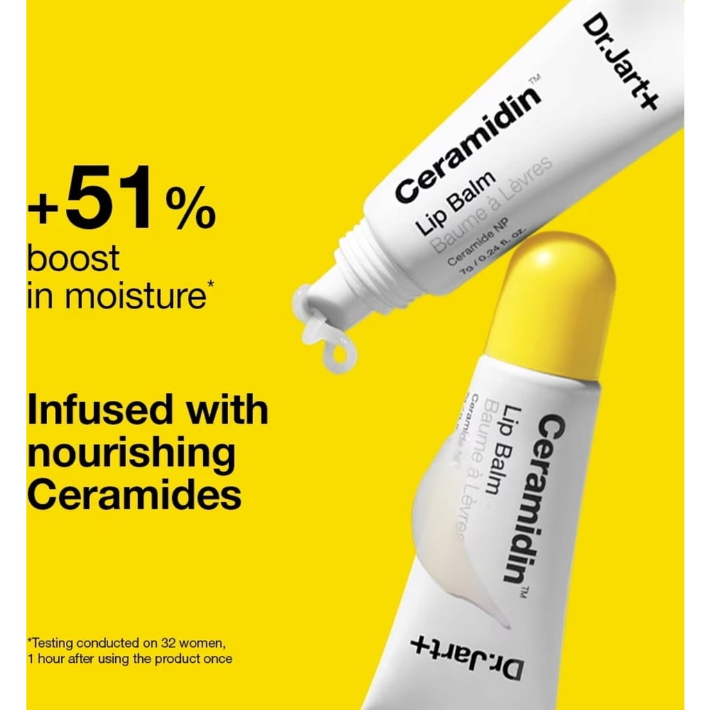 El bálsamo labial Dr.Jart+ Ceramidin, presentado en formato de 7 ml, es tu aliado perfecto para combatir los labios secos y agrietados.