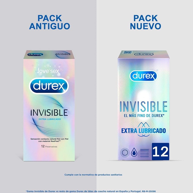 DUREX Preservativos Invisibles Extra Lubricados 12 unidades