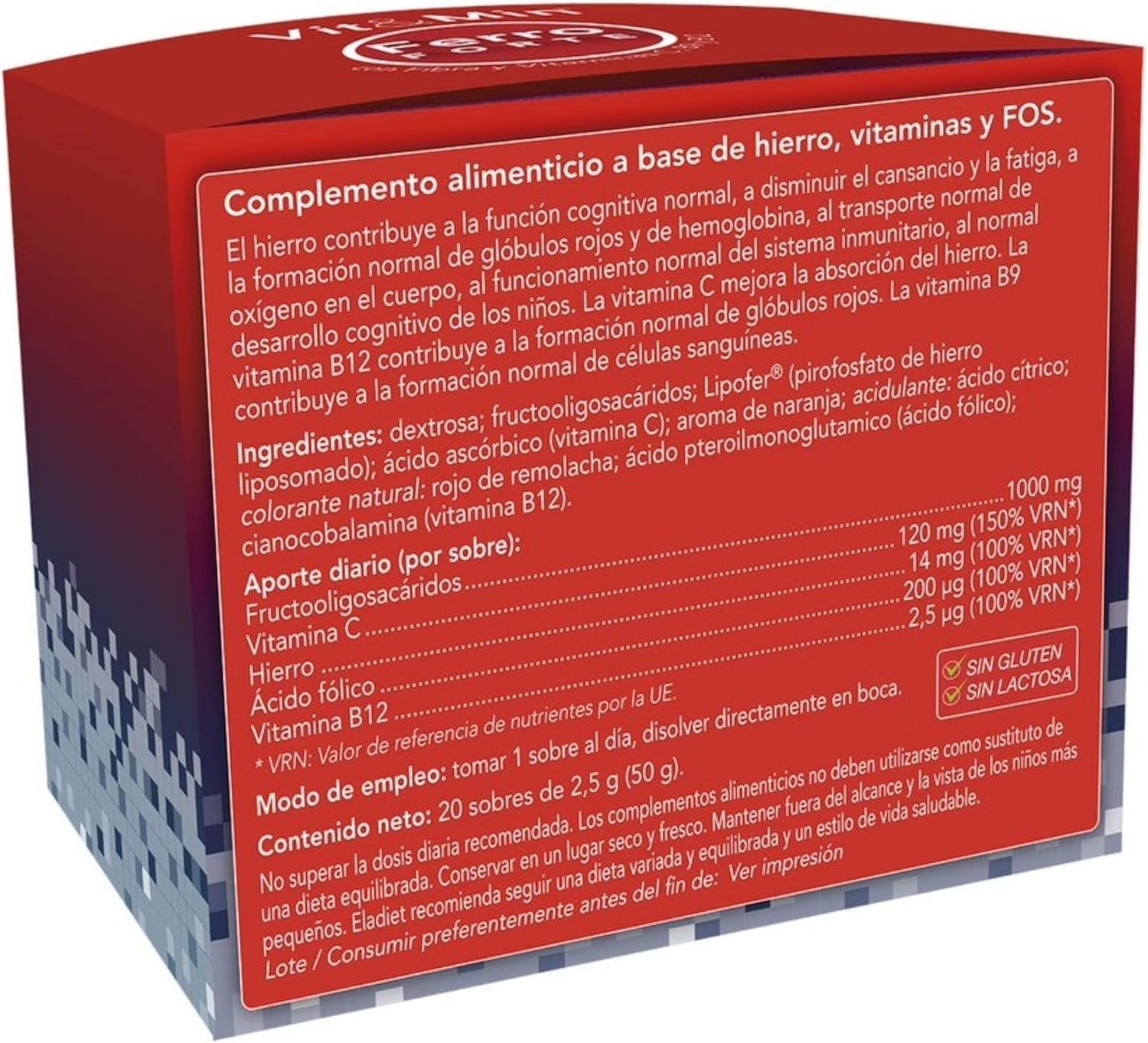 Complemento Alimenticio con Hierro y Vitamina C - Vit&Min Ferro Forte - 20 Sobres - Eladiet. Ayuda a disminuir el cansancio y la fatiga, y contribuye a la formación normal de glóbulos rojos. Sin lactosa, sin gluten y sin cafeína.