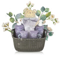 - Canastilla con productos para el cuidado de la piel del bebé.