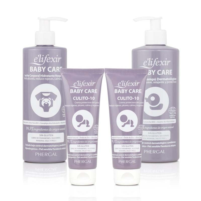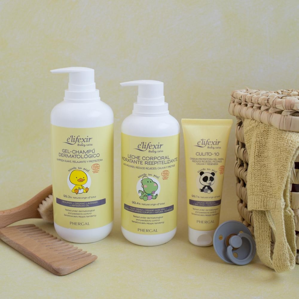 ELIFEXIR Baby Care Canastilla Gel champú + Leche corporal+ Crema Zona del Pañal