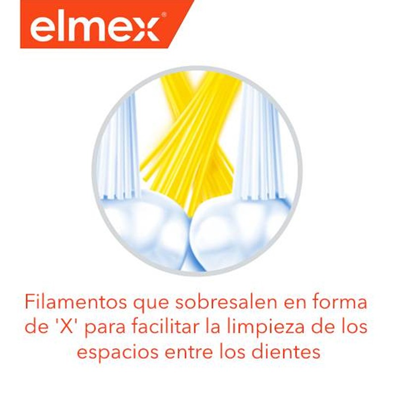 - Con cerdas especiales en forma de X para espacios interdentales.