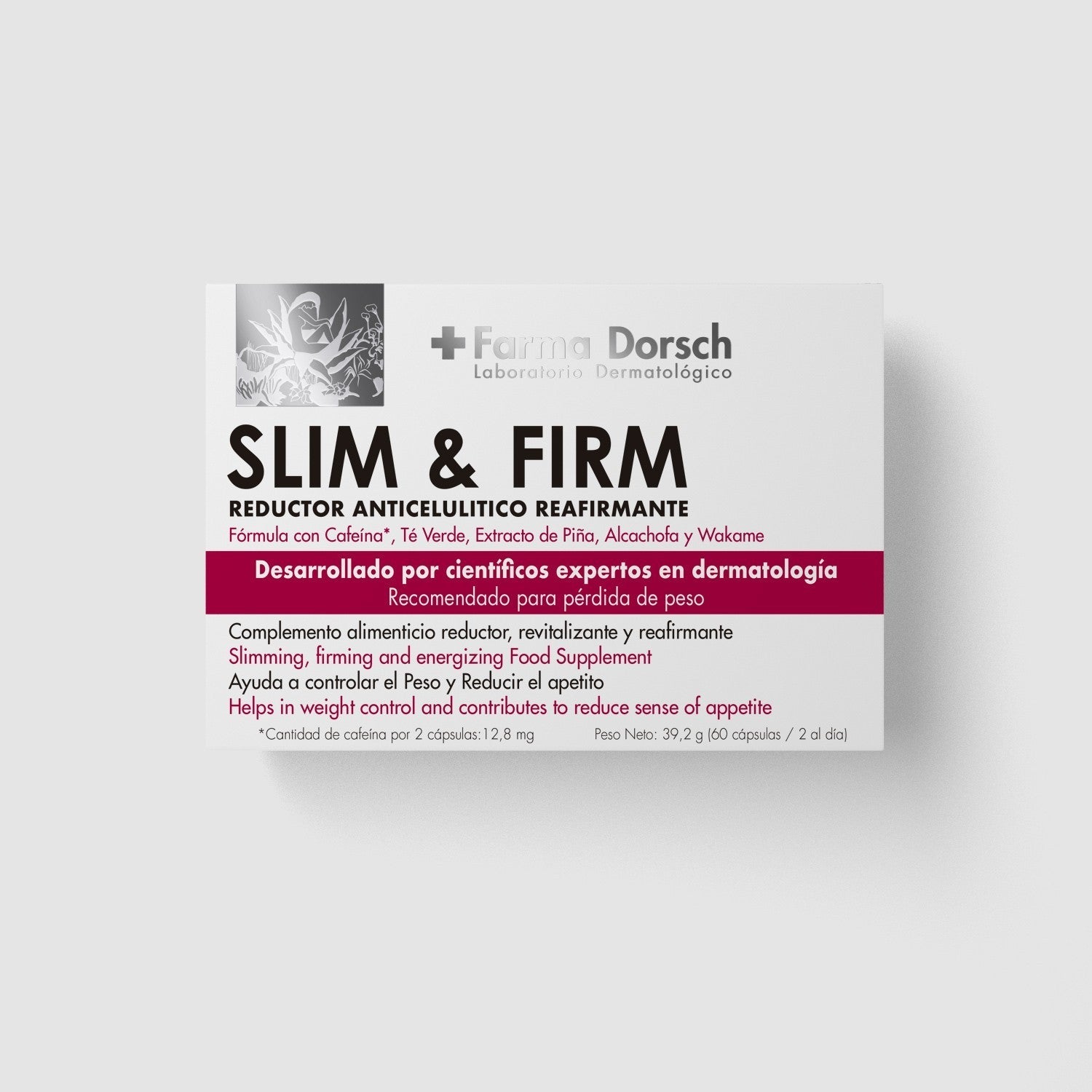 El complemento alimenticio Slim & Firm Reafirmante de Farma Dorsch es una fórmula especialmente diseñada para ayudar a tonificar y reafirmar la piel. Contiene ingredientes como colágeno, vitamina C y aceite oleico, que trabajan juntos para ayudar a mejorar la elasticidad y firmeza de la piel.