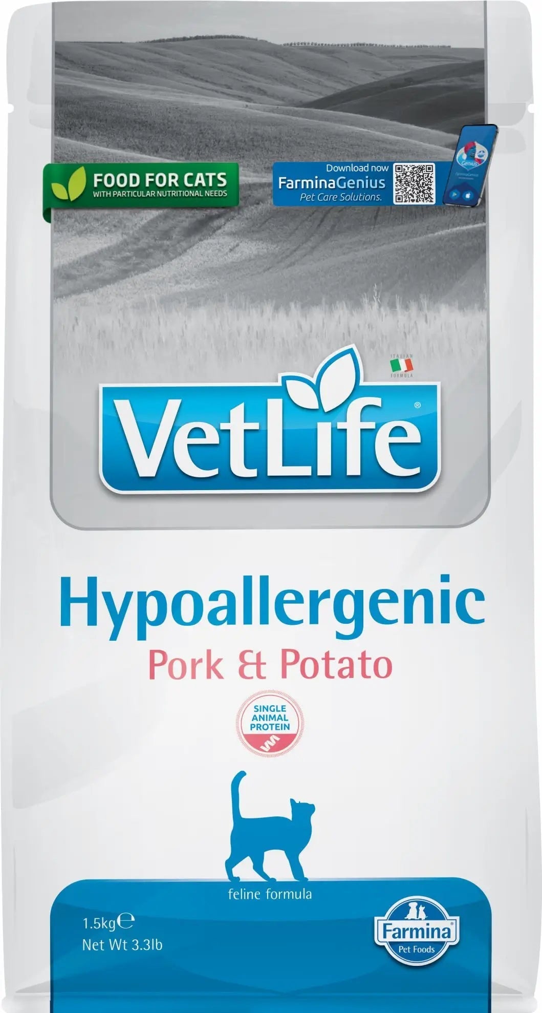 Farmina Vet Life Cerdo Hipoalergénico para gatos adultos de 1.5 kg es la solución ideal para gatos con intolerancias alimentarias.