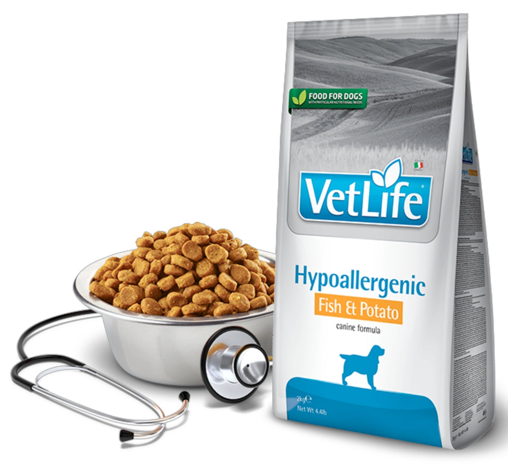 Farmina Vet Life Hipoalergénico Pescado es un pienso seco dietético formulado para perros que sufren intolerancias alimentarias.