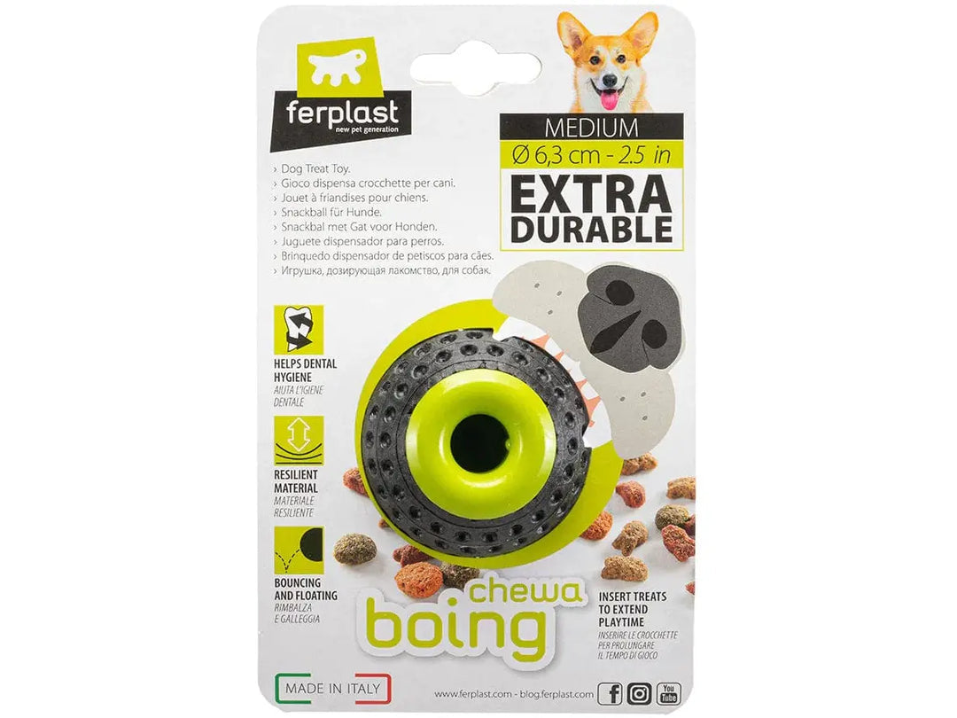 Descubre la pelota dispensadora Chewa Boing de Ferplast, un juguete interactivo perfecto para perros medianos.