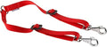 Equipada con dos mosquetones cromados y un sistema de hebilla central, permite ajustar la distancia entre los perros, garantizando un paseo seguro.