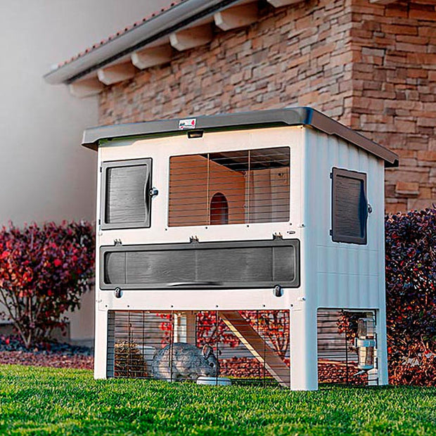 La jaula Ferplast Grand Lodge 120 es el hogar perfecto para tus conejos, elaborada con materiales duraderos de plástico y metal.