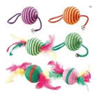 El juguete para gatos Ferplast PA 6110 es una bola de cuerda decorada con plumas coloridas, diseñada para brindar horas de diversión y estimulación a tu gato.
