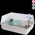 Con unas dimensiones compactas de 55 x 39 x 27 cm, su diseño robusto incluye un techo transparente que favorece la circulación de aire.