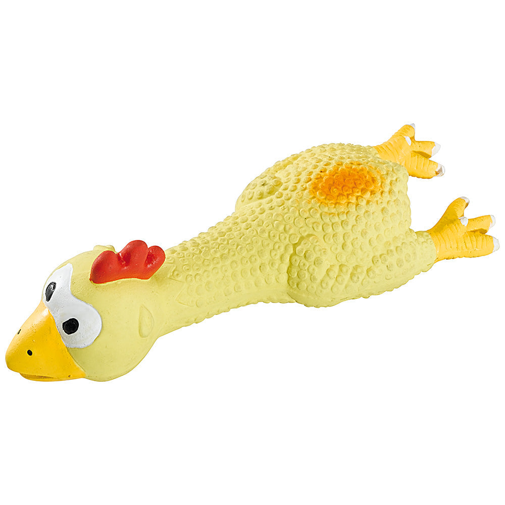 Fabricado en látex atóxico en forma de pollos y patos, este juguete estimula la curiosidad de tu mascota.