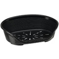 Fabricada con resina termoplástica de alta resistencia, su diseño redondeado incluye bordes altos y un lado frontal más bajo que facilita el acceso de tu mascota.