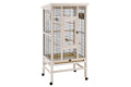Esta voliera moderna cuenta con una gran puerta frontal, dos puertas laterales de fácil acceso, y una bandeja extraíble para una limpieza sencilla.
