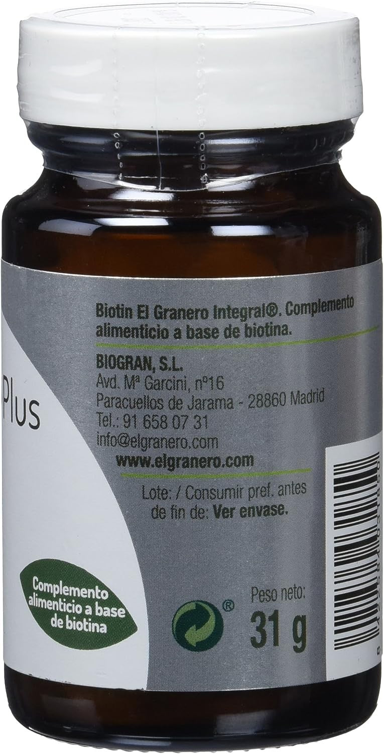 Granero Suplementos Biotin (Biotina Vitamina H) 310 mg 100 Comp. Suplemento con ingredientes naturales como D-Biotina para fortalecer el cabello, piel y uñas.