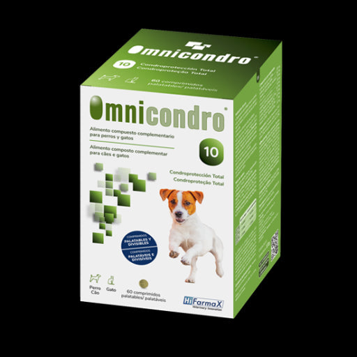 Hifarmax Omnicondro 10 es un suplemento condroprotector diseñado para mejorar la salud articular de perros y gatos de todas las edades y razas.