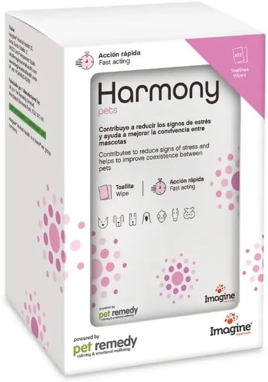Las Toallitas Calmantes Harmony Pets de Imagine son una solución innovadora y ecológica que ofrece un alivio efectivo para el estrés de tus mascotas, ya sean perros, gatos, conejos, aves, reptiles o caballos.