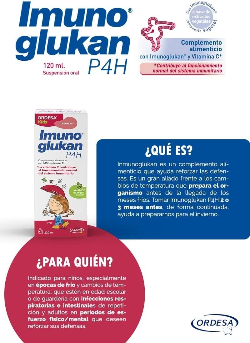- Complemento Alimenticio Imunoglukan Jarabe a partir de 1 año.