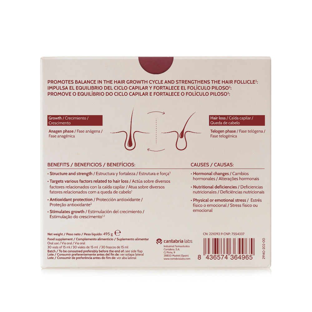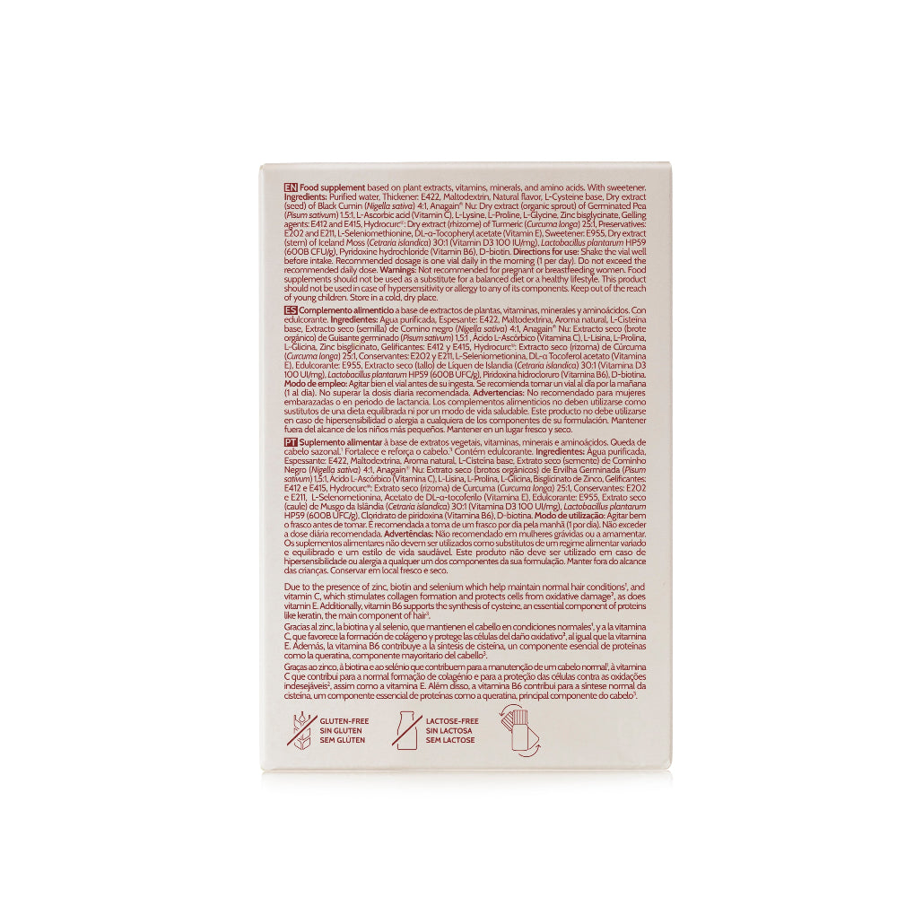 Fórmula bebible para caída del cabello estacional impulsando el equilibrio del ciclo capilar, fortaleciendo el folículo piloso