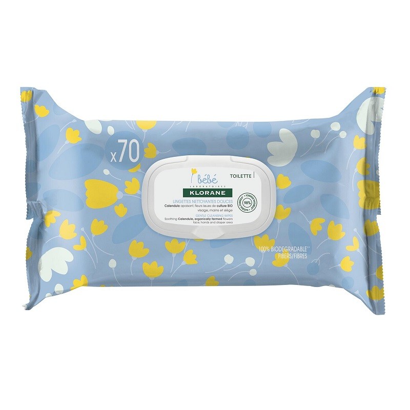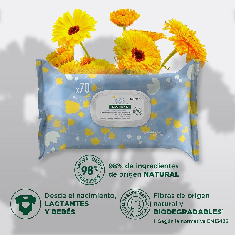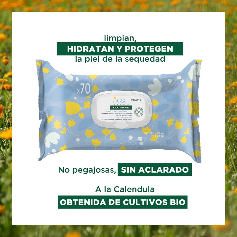 KLORANE BEBÉ Toallitas Limpiadoras Suaves Caléndula 70 Unidades