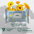 - Toallitas con Fibras de Origen Natural y 100% Biodegradables.