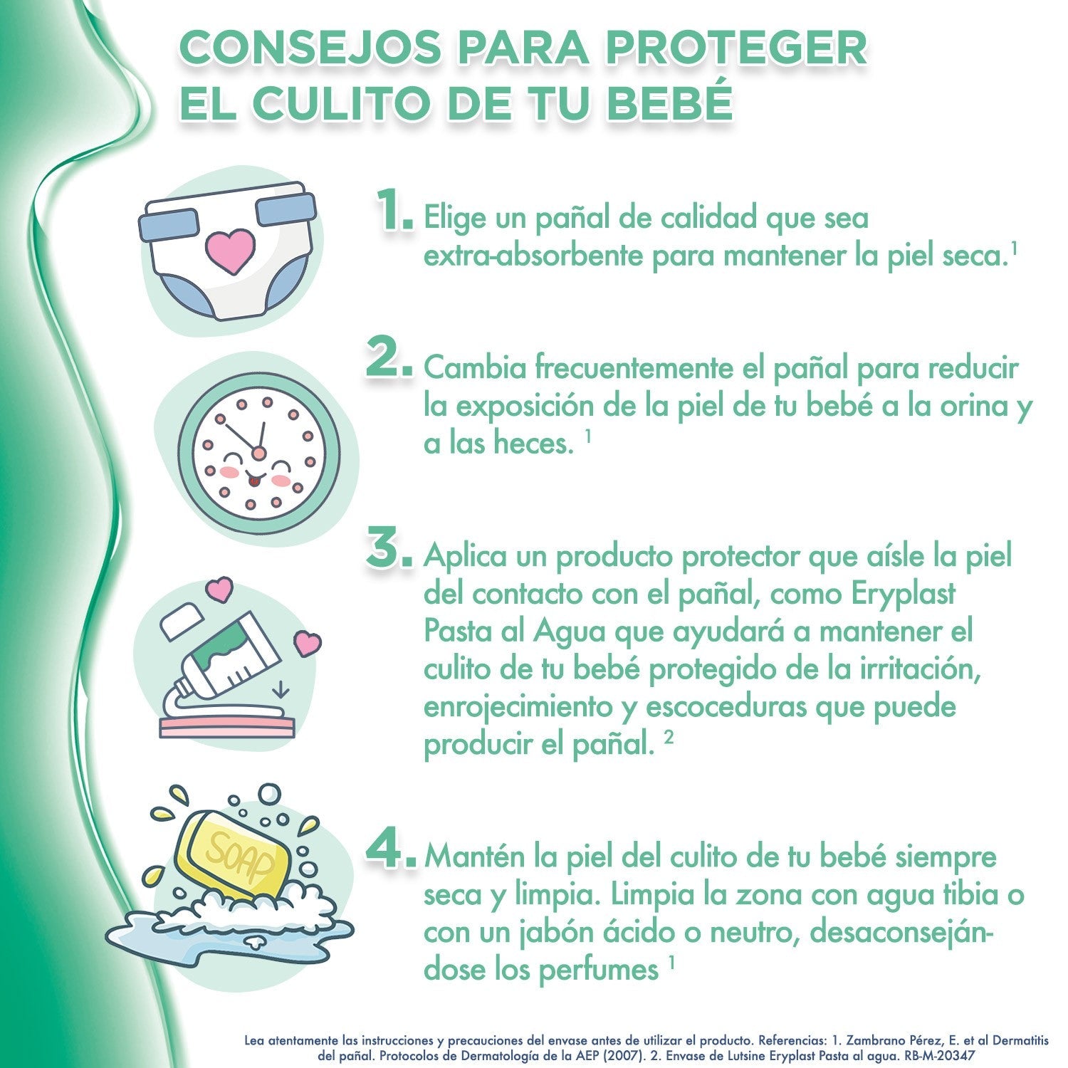 - Crea una Barrera Absorbente entre el Pañal y la Piel.