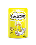Catisfactions Queso es un snack irresistible para gatos, presentado en un práctico pack de 6 sobres de 60 g cada uno.