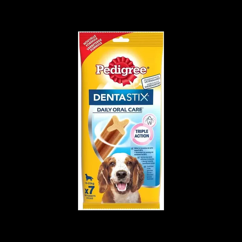 Las **Pedigree Dentastix Raza Mediana** son unos snacks masticables saludables y deliciosos, ideales para perros de razas medianas (10-25 kg) y cachorros a partir de los 4 meses.