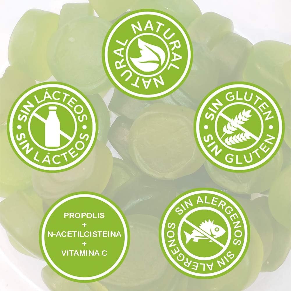 Estas gominolas funcionales, en forma de monedas de sabor a lima, contienen Própolis, N-Acetil cisteína y Vitamina C para combatir resfriados, gripes y favorecer la expulsión del moco.
