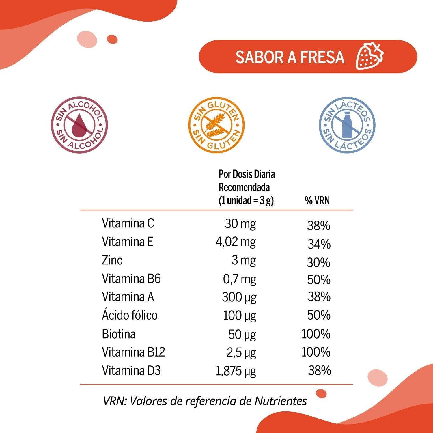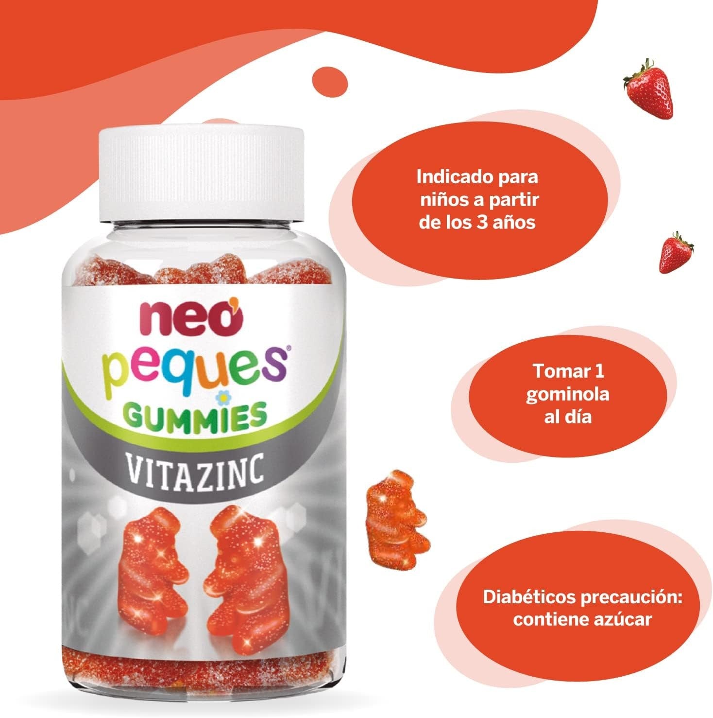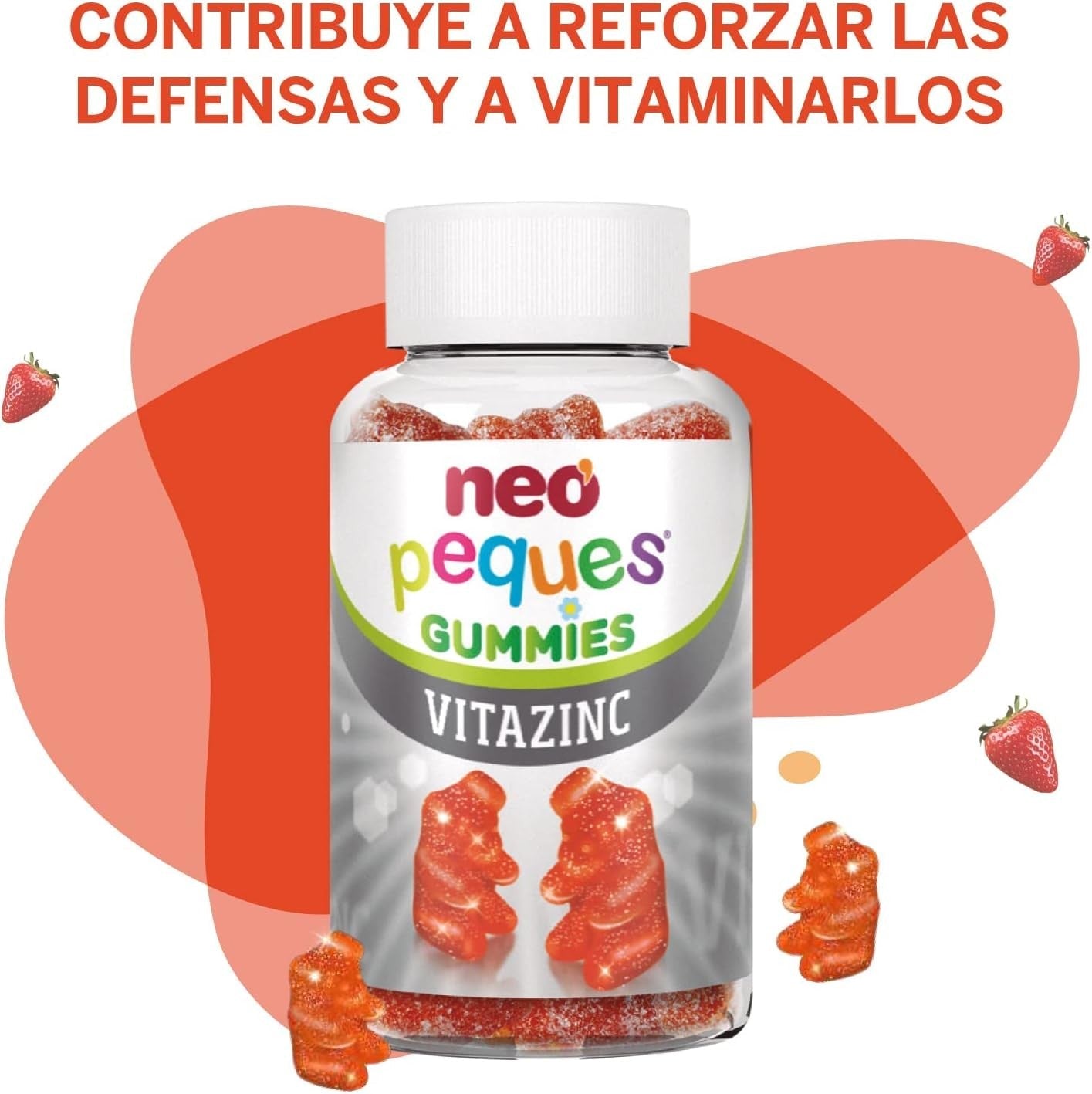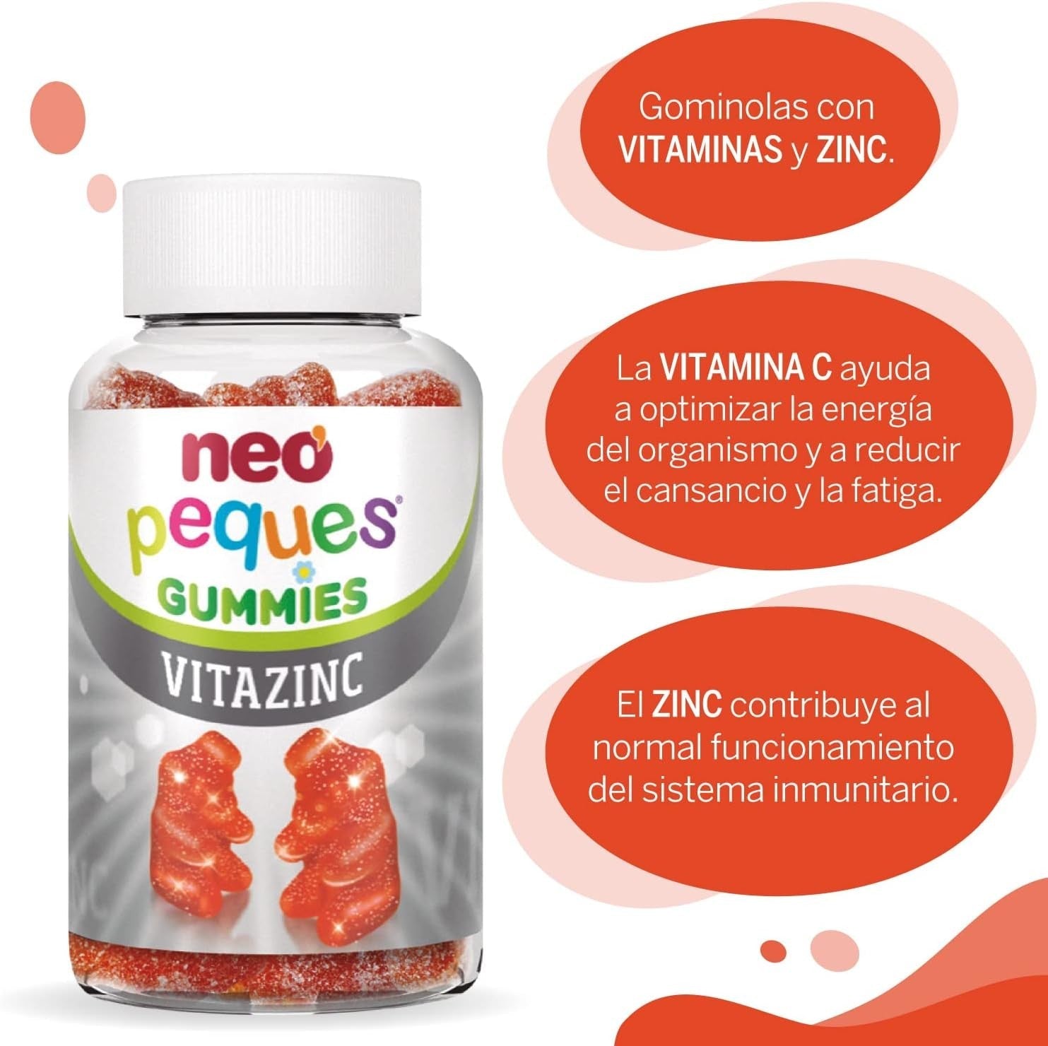 Neo Peques Vitazinc 30 Caramelos Masticables. Caramelos en forma de ositos que fortalecen el sistema inmunológico y las defensas. Con vitaminas C, E, B6, A, ácido fólico, biotina, B12, D3 y zinc. Producto de alta calidad.