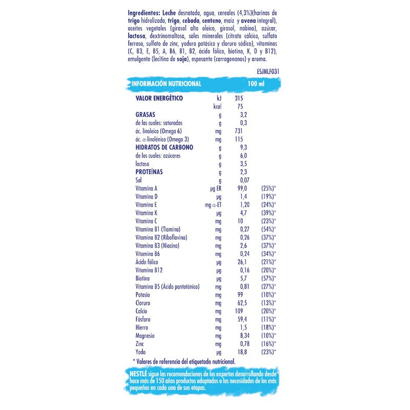 NESTLÉ Junior Crecimiento Cereales 3 años 1L