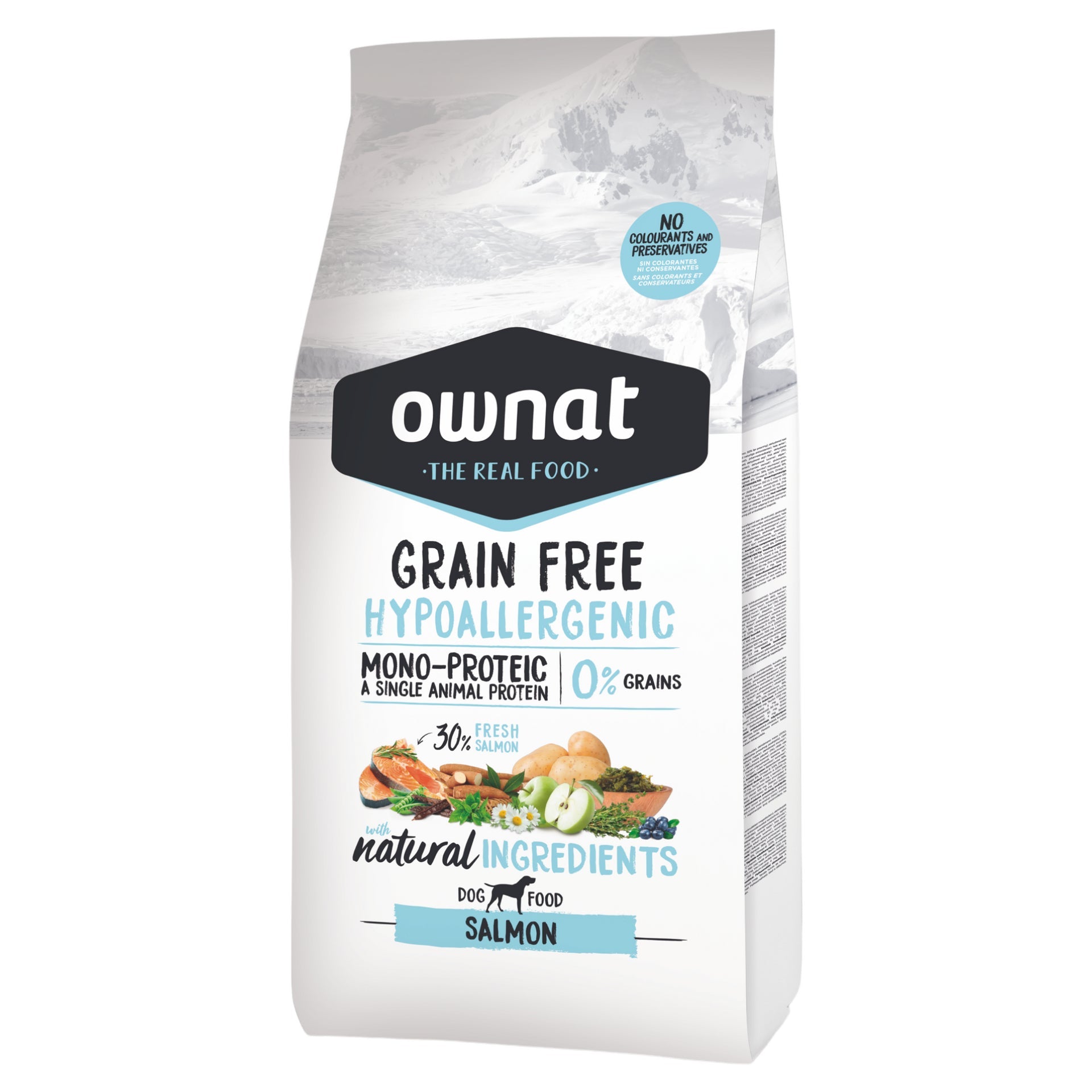 El Pienso Hypo Salmón Ownat Grain Free Canine de 3000g es un alimento premium especialmente formulado para perros con sensibilidades alimentarias.