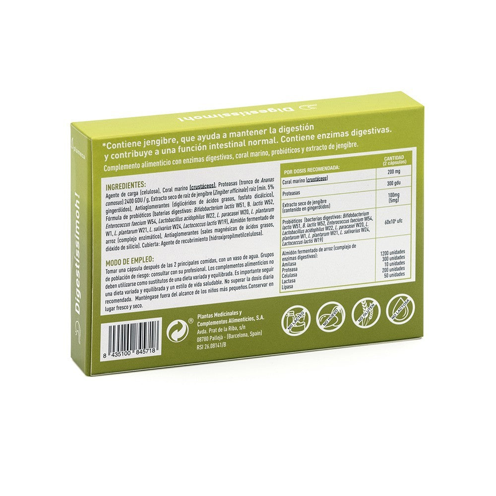 Digestíssimoh! es un complemento alimenticio en forma de cápsulas que contribuye a mantener unas digestiones más ligeras y contribuye a una función intestinal normal.