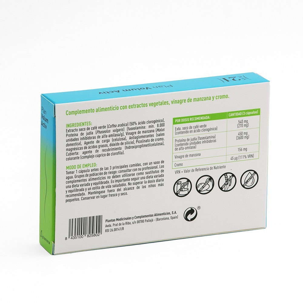 Plan Volum Activ es un complemento alimenticio con café verde y cromo, que contribuye al metabolismo normal de los macronutrientes.