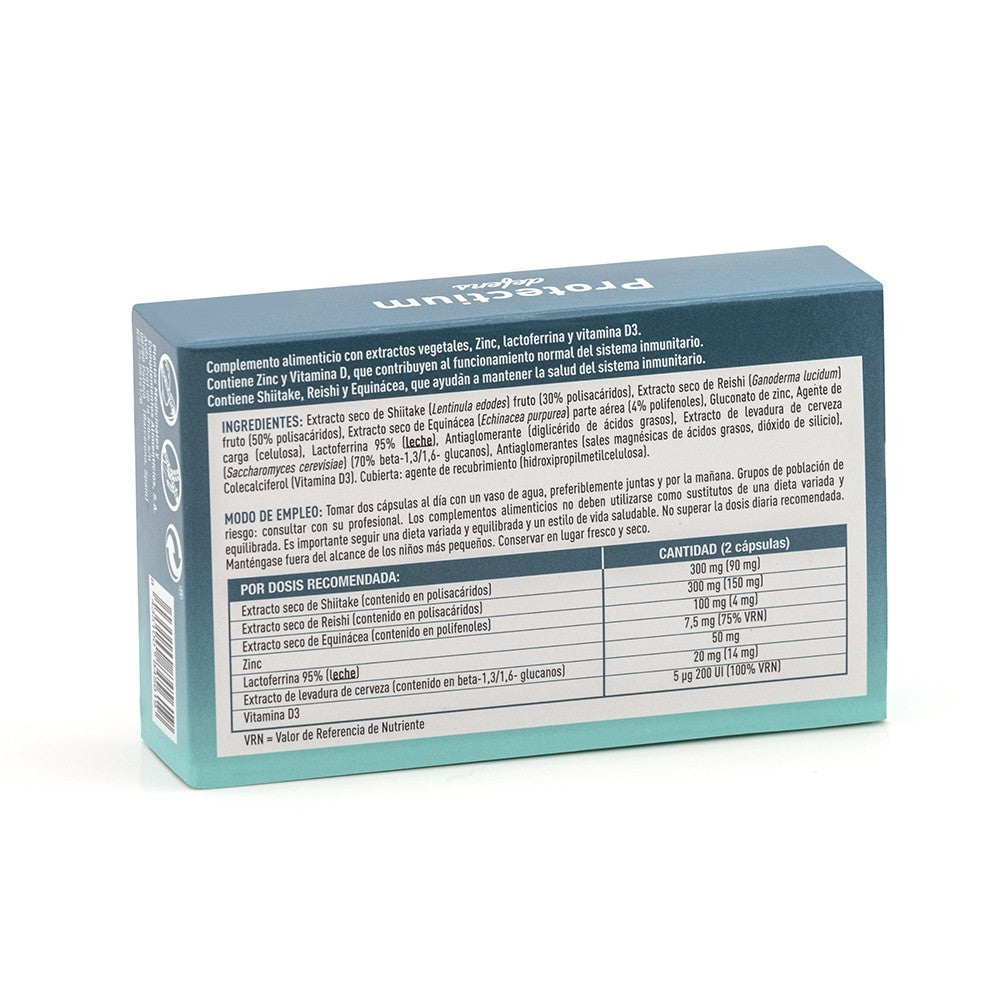 ¡Defensas a tope con Protectium Defens! La fórmula más innovadora para ayudar al buen funcionamiento del sistema inmunitario, a base de Lactoferrina, hongos Shiitake y Reishi, Equinácea, beta-1,3/1,6-glucanos, Vitamina D3 y Zinc.