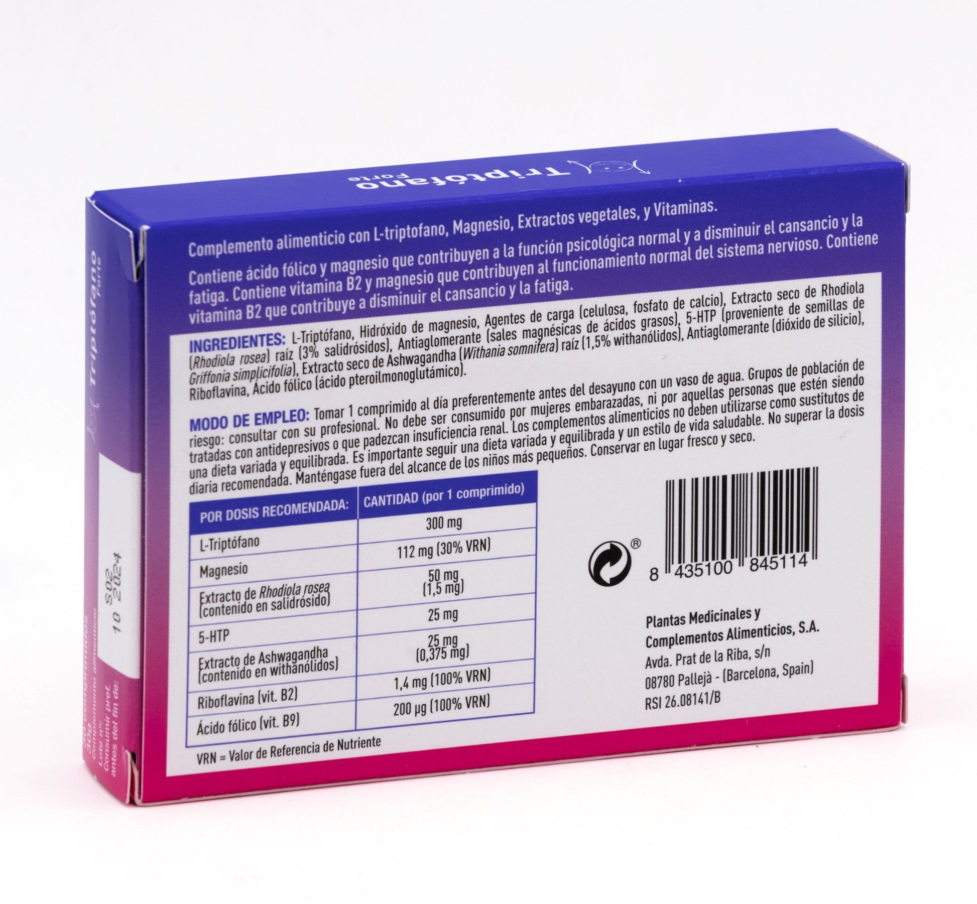 Triptófano Forte es un complemento alimenticio en forma de comprimidos que contiene vitaminas y minerales que contribuyen a disminuir el cansancio y la fatiga, y al funcionamiento normal del sistema nervioso.