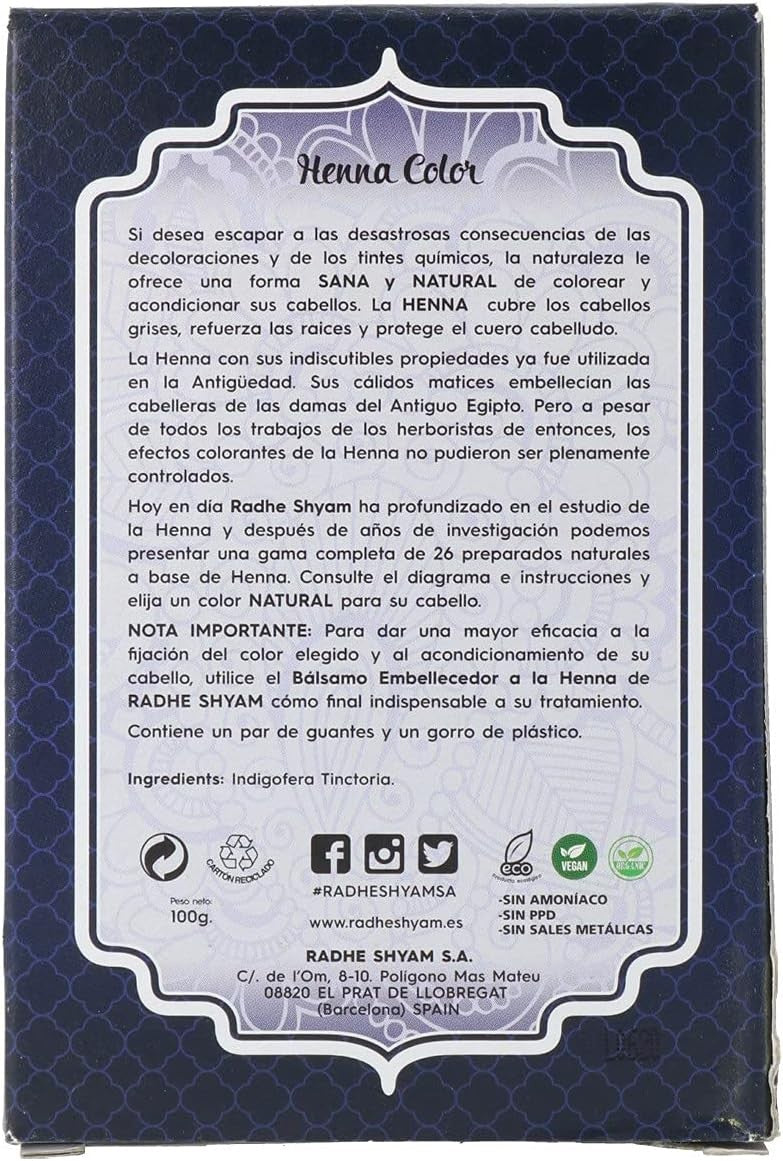 Radhe Shyam Spiritual Sky Henna Indigo Polvo 100 g Tinte 100% Natural que tiñe el cabello sin dañarlo.