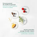 - Con Extracto de Guaraná y Aceite esencial Naranjo, Lavanda y Romero.