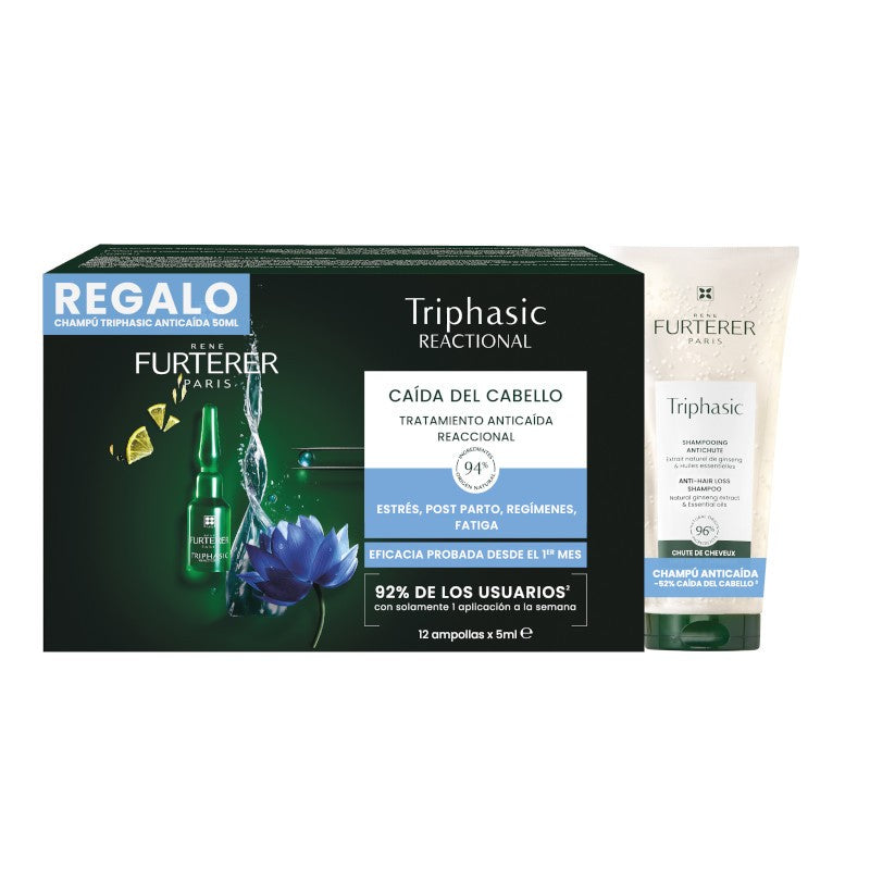 René Furterer Triphasic Reaccional 12 Ampollas + Champú Triphasic 50 ml de REGALO