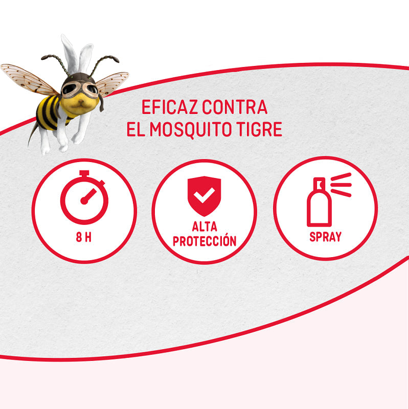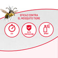 - Actúa contra Aedes albopictus (Mosquito tigre) y Aedes aegypti.