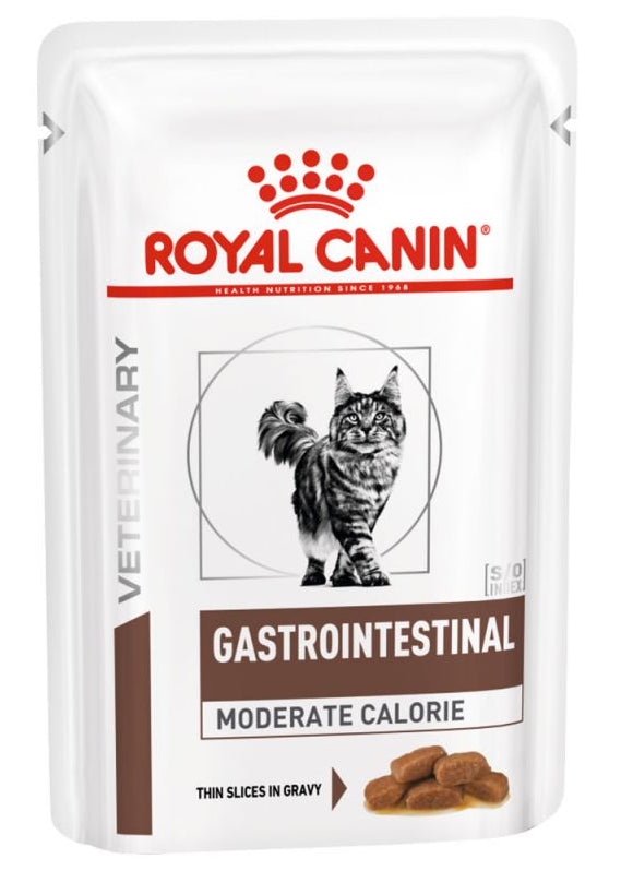 Royal Canin Gastrointestinal Moderado Húmedo es un alimento premium para gatos adultos, ideal para aquellos que necesitan mantener un peso saludable.
