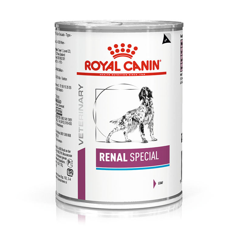 Royal Canin Renal Special es un alimento húmedo dietético específicamente formulado para perros con insuficiencia renal crónica.