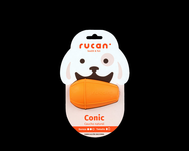 El Rucan Conic Naranja es un juguete interactivo que combina diversión y funcionalidad. Fabricado en España con caucho natural no tóxico, su diseño en forma de cono y color vibrante lo hacen perfecto para perros con mandíbulas fuertes, como cachorros en crecimiento. La dureza media de este juguete lo convierte en una opción ideal para el juego diario.