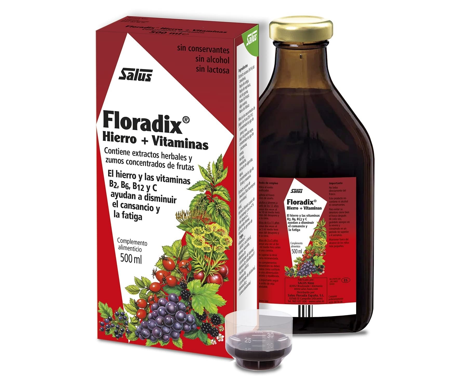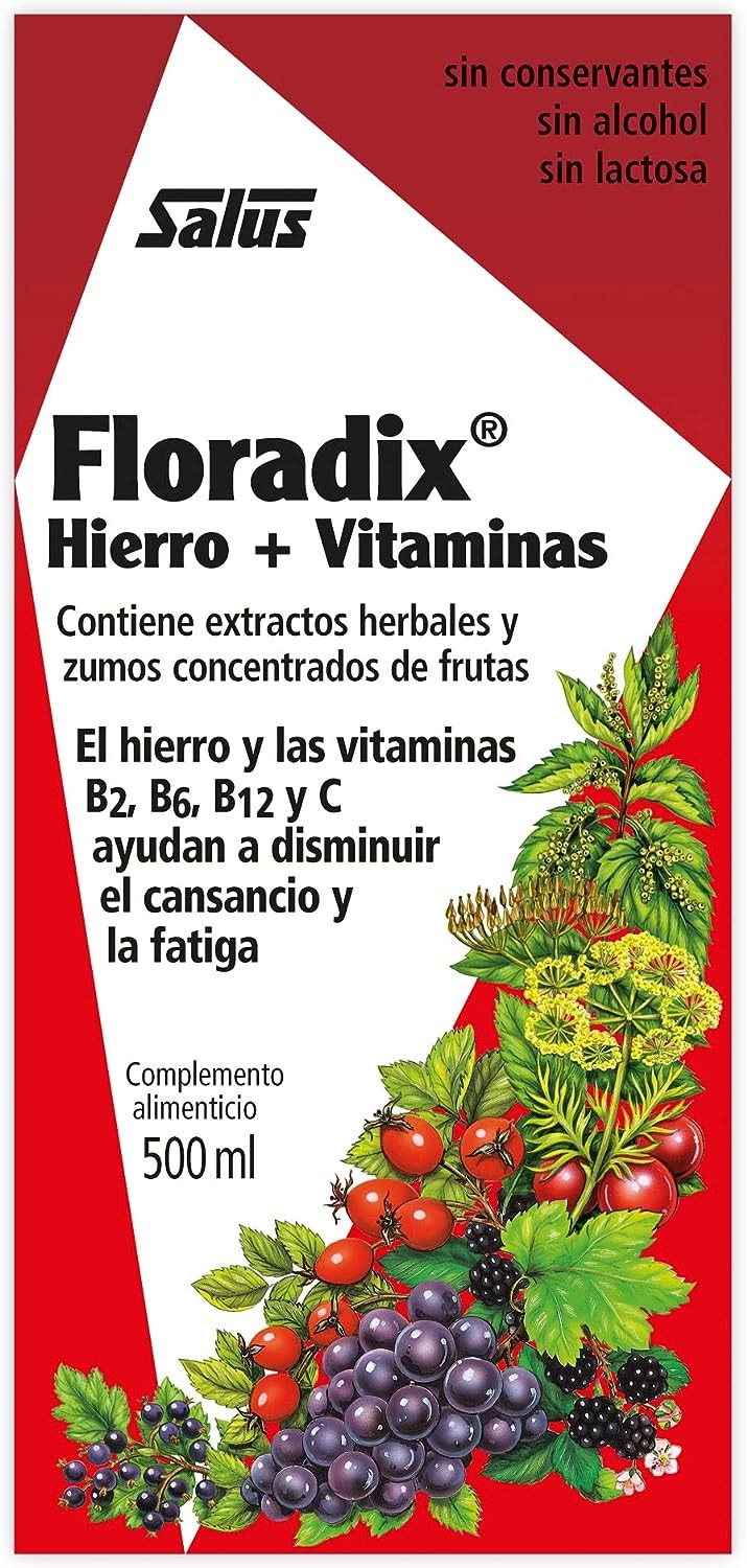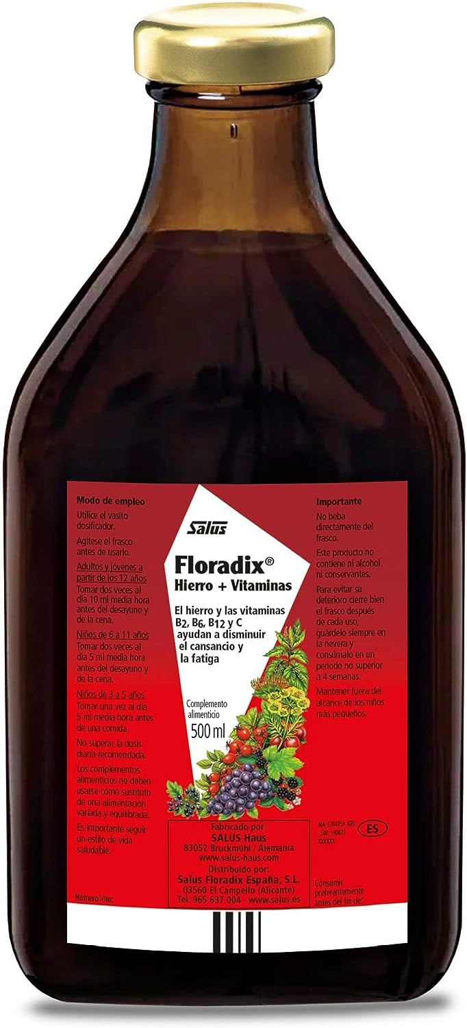 Salus - Floradix Líquido - Contiene Hierro Orgánico y Vitaminas B2, B6, B12 y C - Reduce el Cansancio y la Fatiga - 500 ml