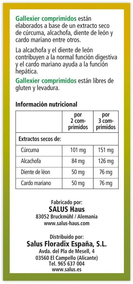 Salus Gallexier 84 Comprimidos, contribuye al Buen Funcionamiento del Sistema Digestivo y hepático.