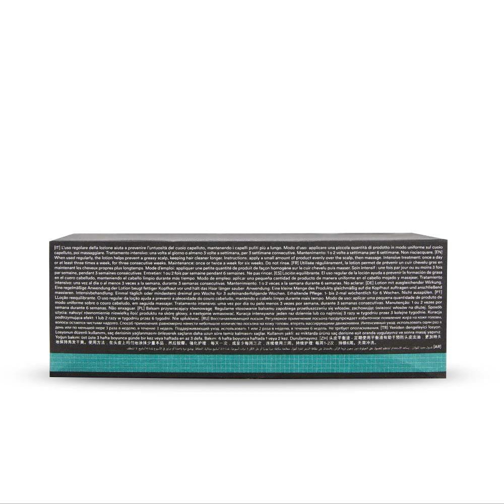 Fórmula vegana que regula el sebo, alivia irritaciones y equilibra el pH del cuero cabelludo.