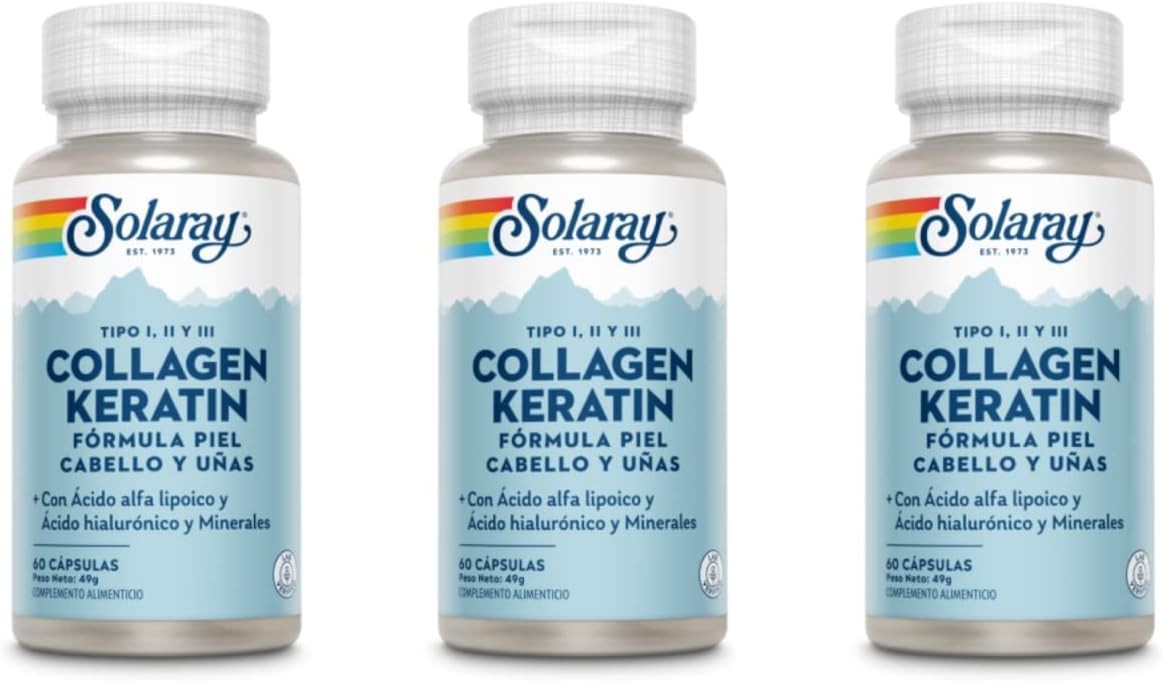 Collagen Keratin - Colágeno con Queratina - 60 cápsulas como complemento alimenticio para adultos que ayuda a reforzar la piel, el cabello, las uñas y articulaciones