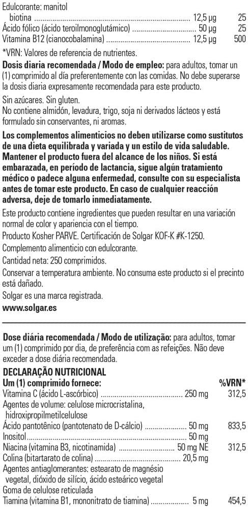 Solgar B-Complex con Vitamina C 250 Comprimidos